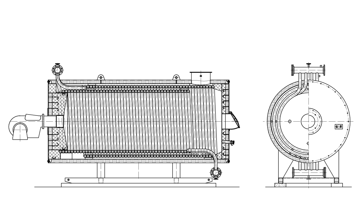 7、流程設計:煙氣三回程,介質(zhì)流經(jīng)內(nèi)外盤管,流速均勻,運行安全、穩(wěn)定。
